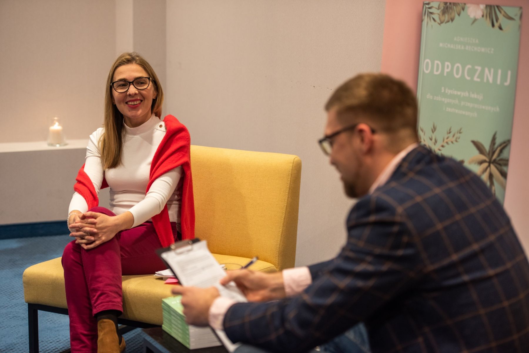 Rozmawialiśmy na temat książki "ODPOCZNIJ 5 życiowych lekcji dla zabieganych, przepracowanych i zestresowanych”.